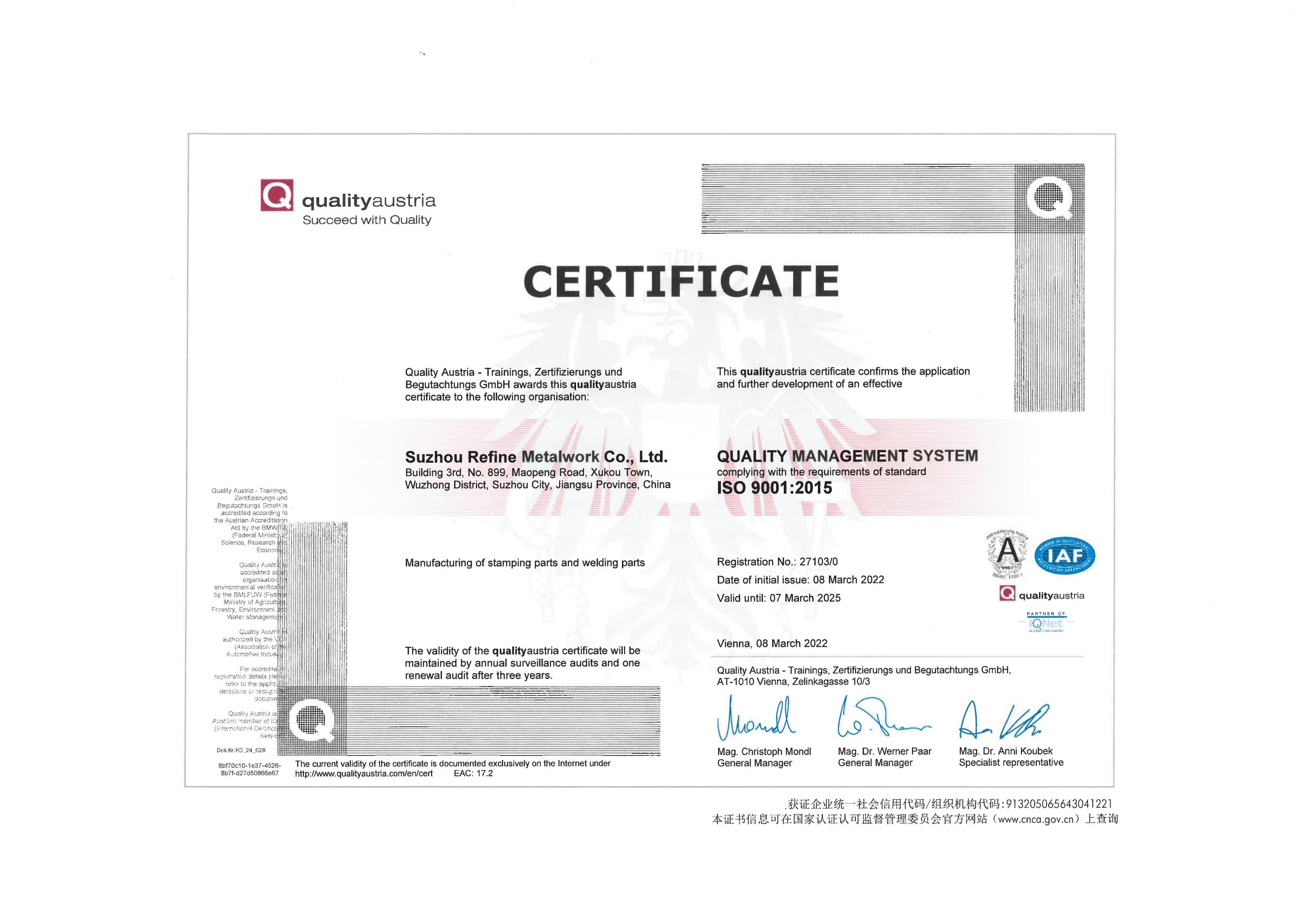 艾銳琺公司以技術(shù)為核心,向客戶提供優(yōu)質(zhì)的產(chǎn)品、準(zhǔn)時(shí)的交期、合理的價(jià)格、優(yōu)質(zhì)的服務(wù)從各方面不斷開拓進(jìn)取,服務(wù)于客戶,公司實(shí)行ISO9001&IATF16949質(zhì)量保證體系,致力于打造國(guó)內(nèi)一流的精密鈑金制造公司。