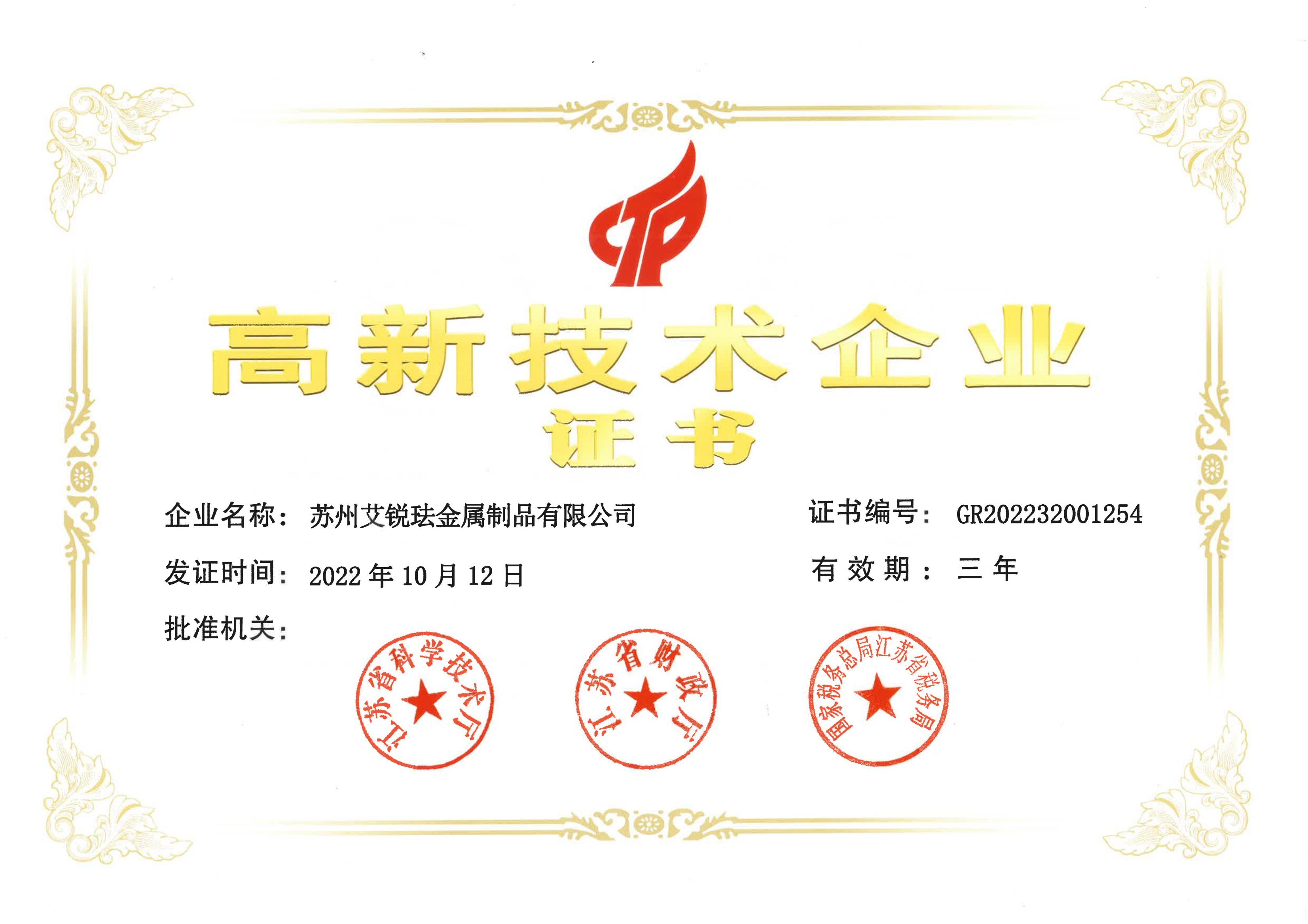 榮譽(yù):江蘇省高新技術(shù)企業(yè)